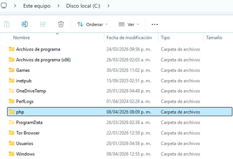 C:\php\php.exe -v - Si el sistema te responde con la versión de PHP, la validación ya está activa y funcionando.