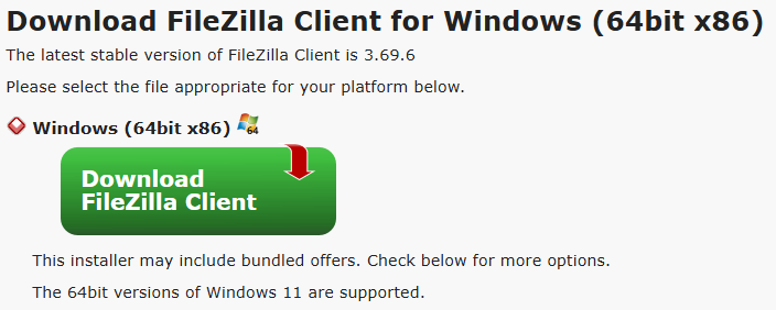 Evita el botón de descarga principal: No descargues el primer ejecutable que veas en la web de FileZilla si tiene la palabra sponsored en el nombre.